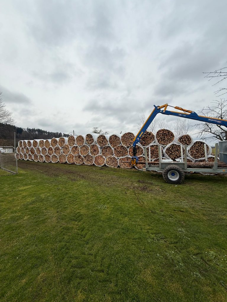 Sie haben einen Holzpolter im Wald liegen und benötigen Unterstützung beim Transport ihres Holzes? Mit unserem kompakten Rückewagen können wir Stämme bis 5m Länge problemlos für Sie transportieren.